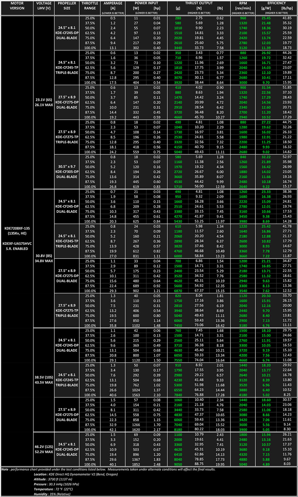 | Propeller Blade Size | Up to 30.5"-TP (24,5"-DP Maximum on 12S) |